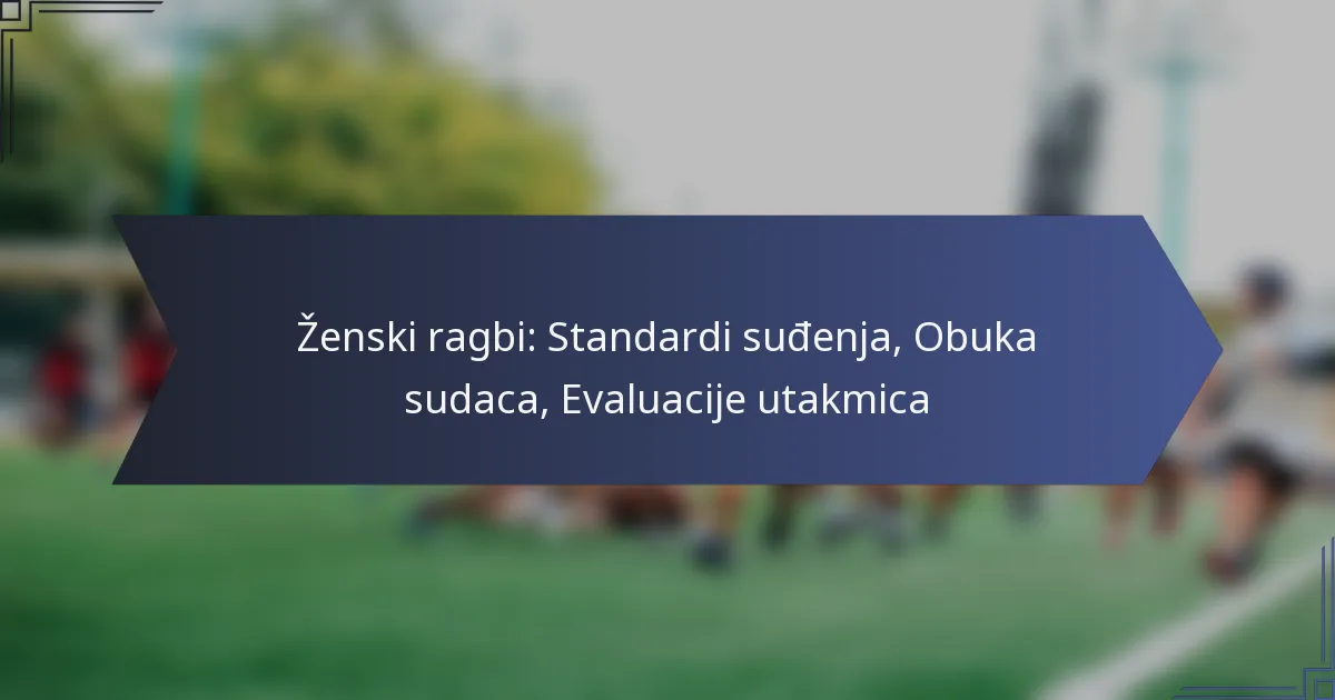 Standardi suđenja u ženskom ragbiju dizajnirani su kako bi osigurali fer igru, sigurnost i integritet igre. Ovi standardi obuhvaćaju kvalifikacije sudaca, procese evaluacije utakmica i regulatorna tijela koja nadziru ove prakse.